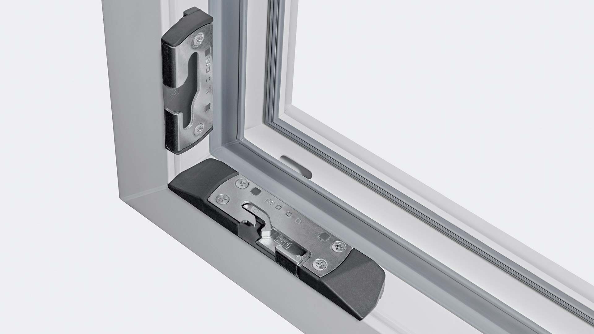 Draft-free ventilation. The design of windows with activPilot Comfort PADK fittings minimizes drafts and prevents the window sash from hitting the frame during strong gusts of wind. Special hooks securely fasten the window sash to the frame.