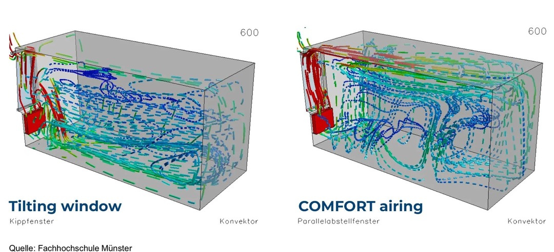 Energy efficiency. During the winter season, ventilating rooms can lead to significant heat loss. When the window is in the tilt position, known as "tilt-and-turn," air quickly enters the interior and cools it down. In the parallel ventilation mode, the room is ventilated evenly and without significant heat loss. This ensures a comfortable temperature in the building and proper air quality.